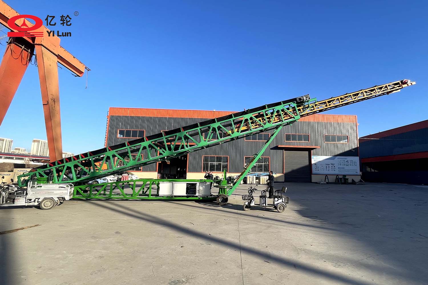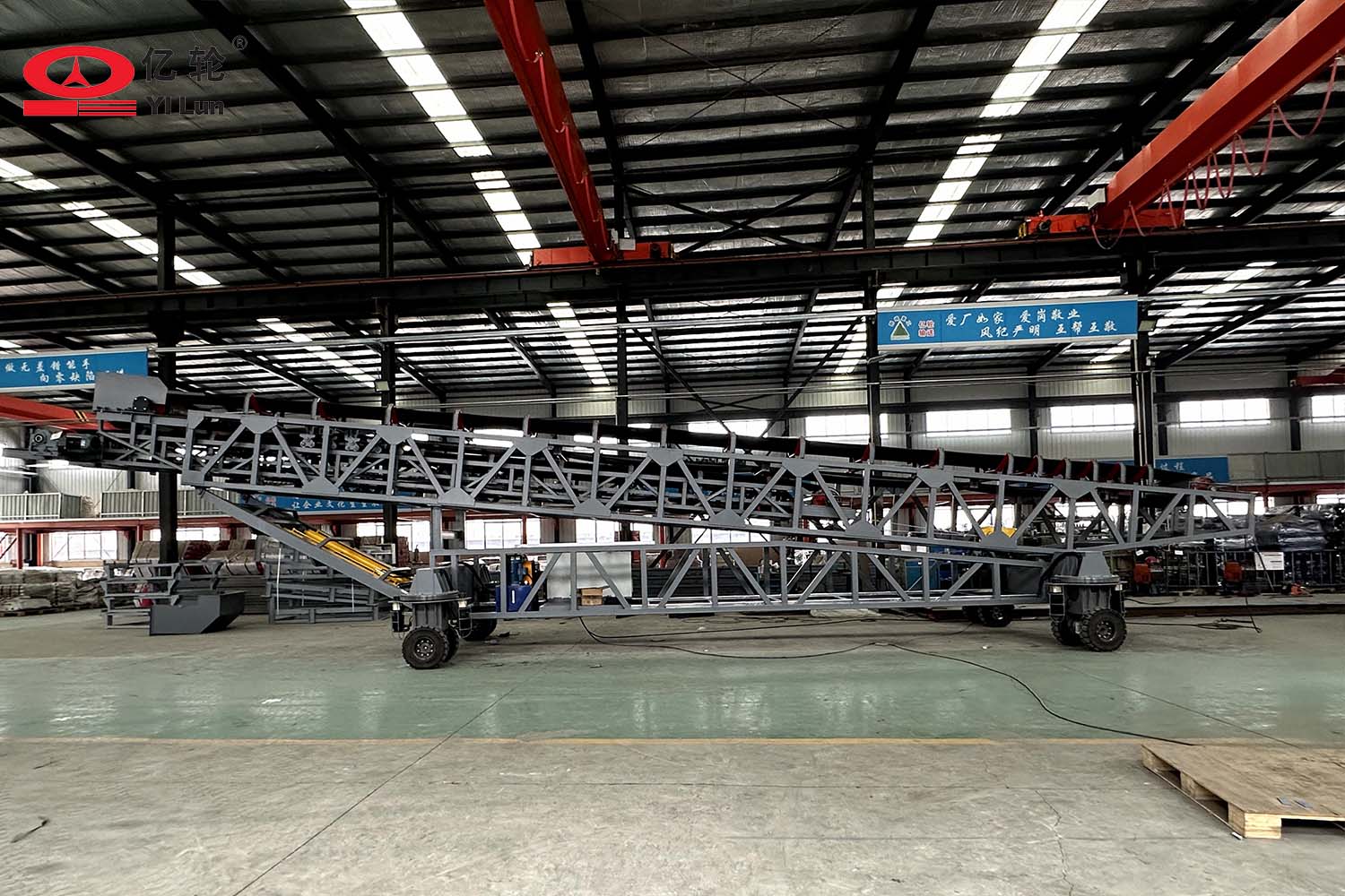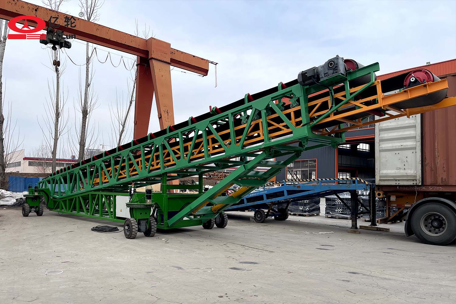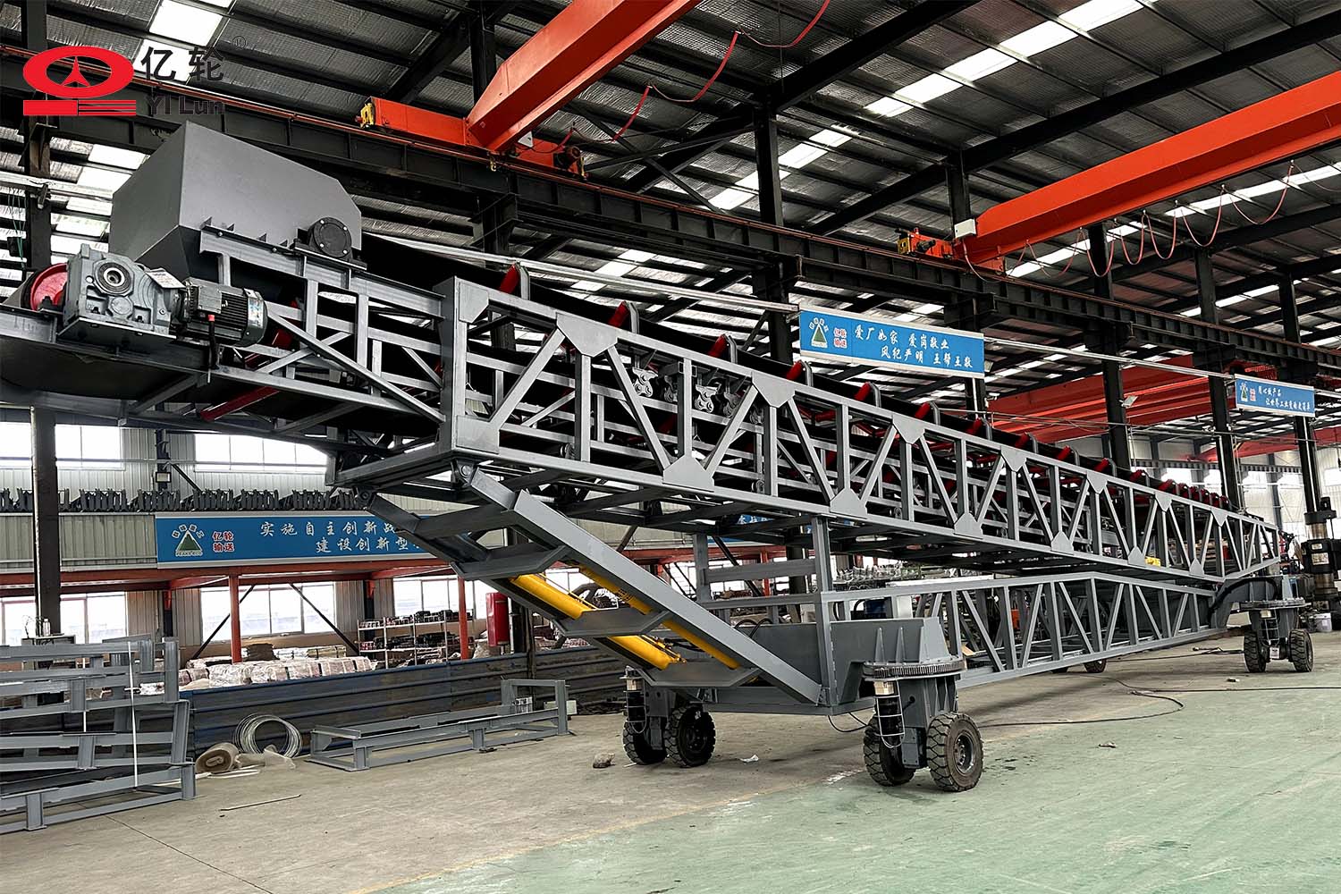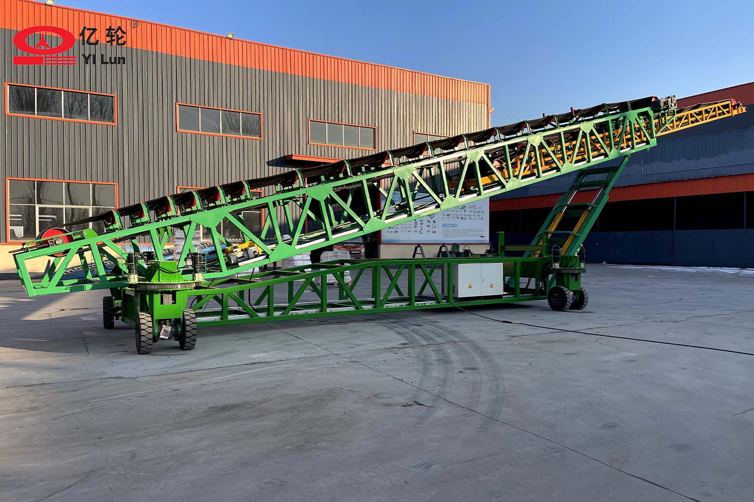 大型智能四驅(qū)輪胎式輸送機,采用伸縮輸送臂和液壓升降架,能夠便捷的調(diào)節(jié)堆料的半徑和高度,場地內(nèi)任意方向行走,料場能最大限度的堆滿,具備強大的物料倉儲管理的能力。